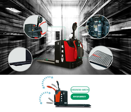 ● 手柄頭部的緊急反向按鈕在向后行駛遇到緊急情況時(shí),能有效避免駕駛員受到傷害。